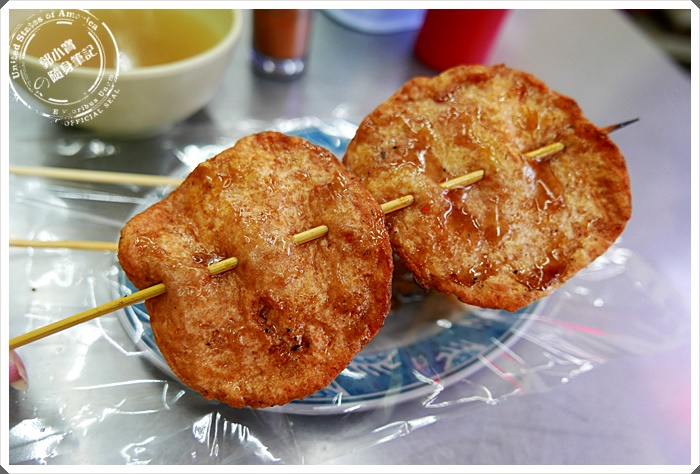 | 眾所矚目就是這個烤黑輪啦~真的寶妹看每一個客人一定帶上一隻烤黑輪,阿倫與米雪兒的烤黑輪非常特別,不是硬烤到非常酥的那種類型,厲害的火侯控制把黑輪片的彈性及水分都還保留著,加上他們的黑輪片味道跟別人家吃到的真的不太一樣,微酥微軟的黑輪片沾上一些特調的醬汁,吃起來實在是超級銷魂的,叫寶妹一個人嗑完兩隻烤黑輪,我想應該沒問題。 |
