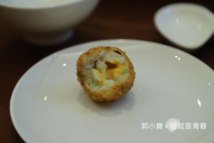 | 看起來跟入口完全不一樣的一道菜,墨魚丸炸的相當漂亮,入口爆口而來的滑順濃郁起司搭配墨魚漿彈牙口感,一整個完全種了我的點! |