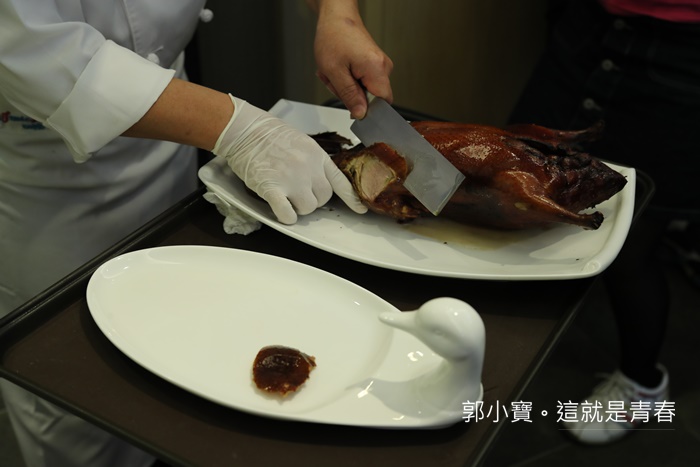 | 看到這麵皮就知道要上烤鴨了,偉強師傅的烤鴨功力是不用懷疑的了,除了烤鴨功夫以外,其實片鴨的功力也是需要訓練的。 |