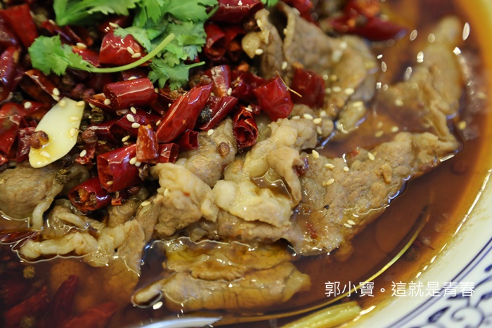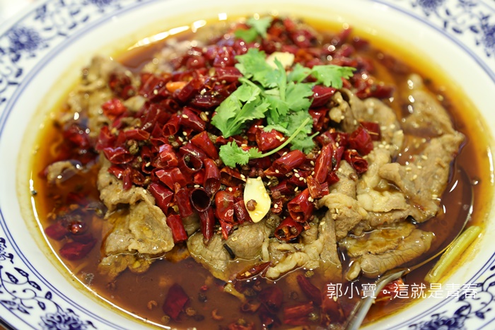 | 也是我超愛的一道菜,相當下飯,但是當天老實說菜太多了,所以沒有人點白飯,光吃菜就快飽到天靈蓋了,這川味水煮牛的滋味跟剁椒魚完全不同,入口可以吃到肥牛肉的軟嫩敢跟油脂,但是肥膩的油脂感全部都被那麻感跟花椒香氣取代,越吃越過癮! |