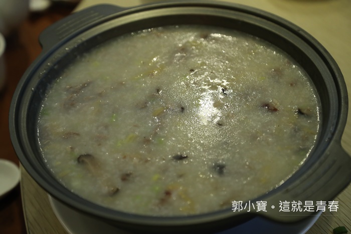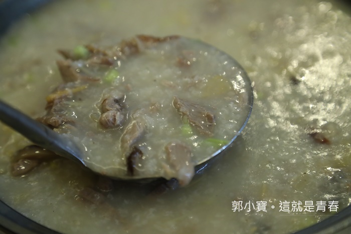 | 烤鴨兩吃另一吃就是把鴨架子拿去熬粥,鴨骨的滋味完全跟鹹粥融合再一起,一碗接著一晚真的超好喝的。 |