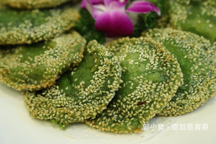| 因為虎哥在湖北吃到綠茶餅說很好吃,所以偉強師傅特別的復刻出來這一道,雖然虎哥說滋味跟他吃到的完全不一樣,但是我個人還滿喜歡的,吃起來有點像是麻糬的感覺,芝麻提味相當可口,熱呼呼軟綿綿的好好吃! |