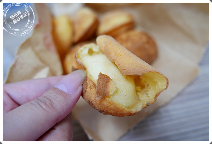 | 阿嬤連間雞蛋糕的手勢都傳承的一模一樣,寶妹就是最喜歡這個中間凸起來的麵糊蛋糕,每一次都吃到紮實的香味跟口感,我很愛把它剝開來分上下層吃,但其實只是本人自己怪癖吃法而已,但不知道就是要著樣吃才有吃幸福雞蛋糕的感覺,連手法也是要一起回味的~ |