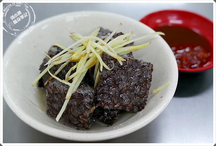 | 首先是麻油米血上桌啦~~竟然是用碗裝的= =,好綿密軟心的口感,淡淡的麻油香氣,在配上店家供應的醬油膏及辣椒醬,實在是補身又有飽足感。寶妹點的是小份的麻油米血$30,已經算是分量很多了~~ |