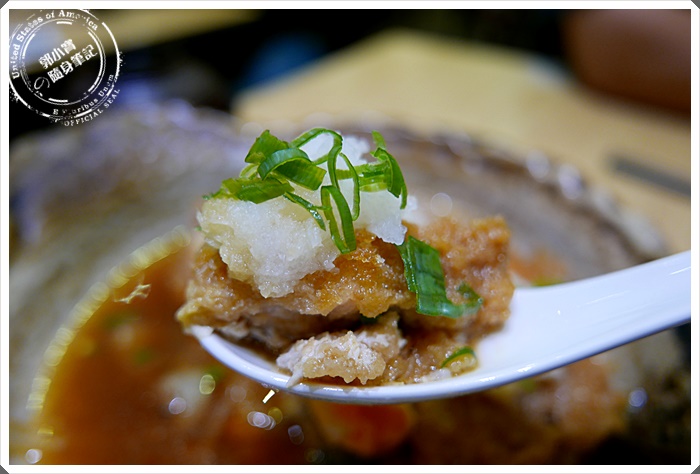| 原本酥炸的雞排在經過燉煮後變得清爽柔軟,沒有像炸豬排或日式炸物的脆口酥硬,但多了是一份柔嫩,每一口上面跟著紮實的蘿蔔泥還有蔥花一起入口,銷魂的口感清新入口~ |
