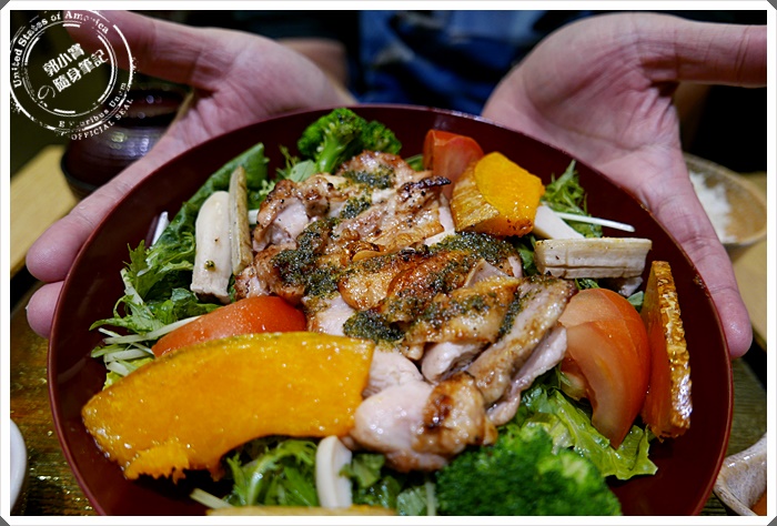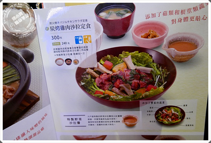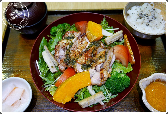 | 朋友選的是炭烤雞肉沙拉定食,看起來就很健康,後來發現很多朋友來大戶屋也都會選擇這一款的定食唷 |