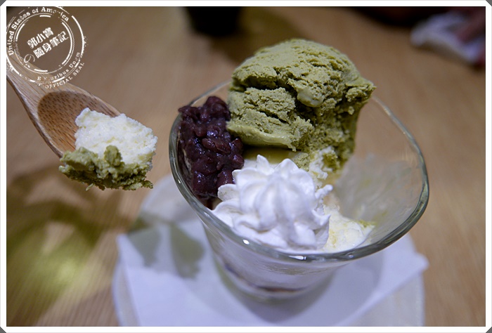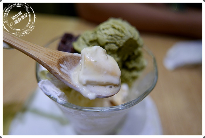 | 看圖比較清楚,除了蜜紅豆以及抹茶&香草冰淇淋之外,底下還有黑糖蜜以及豆奶凍。 |