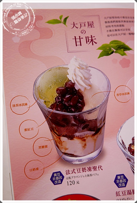 | 接下來吃完了正餐,寶妹要特別介紹一道上次來大戶屋挖到的寶貝,法式豆奶凍聖代$120,這真是一道太銷魂的甜點。有一次只是要找安靜的地方坐跟人談事情,大戶屋沒有低消又有提供甜品飲料單點才坐進來的,沒想到上次點到這道甜點實在是銷魂萬分~ |
