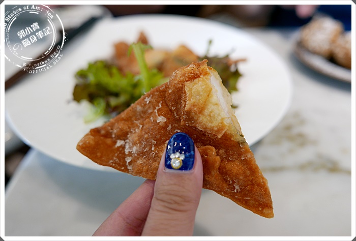 | 裏頭厚厚的花枝泥,而且還保留了一些塊狀增加口感,給午茶時間不愛甜食的朋友多了一道午後選擇~~ |