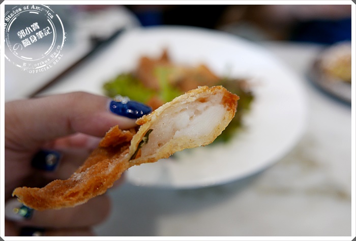 | 特別要推薦的是這個朋友亂亂點來的雲吞花枝餅$120,咬了一口實在厲害到不行,使用大張的雲吞皮包覆了花枝泥去油炸,邊皮酥脆又帶勁,香氣十足。沒吃到真的會讓人遺憾啊 |