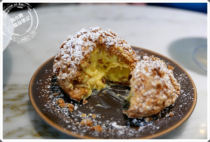 | 好友的玄米泡芙~還特地切開讓寶妹拍照超貼心,內餡的奶香味好吃不甜膩,外皮酥酥的口感也是超適合配茶一起享用。 |