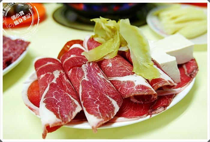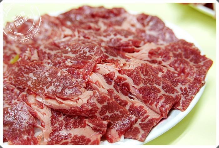 | 牛肉的切法很特別,一片都是可以再對開的肉片,刀功了得阿~大約有快接近0.5公分的厚度,下鍋時建議真的涮幾下就好。 |