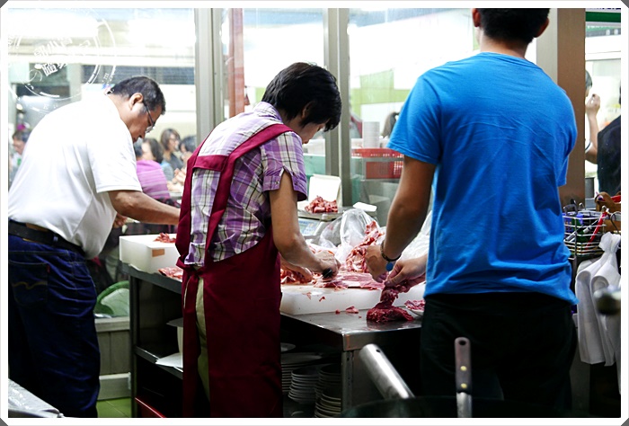 | 只要是正餐時間來你沒有事先預約到,基本上來到這邊就是要等到一個小時的,那真的不誇張,但還是發揮了歹丸郎的排隊精神,想吃就是愛排隊,這應該是台灣人吃美食的至理名言,不過如果晚間九點過後就比較不需要排隊了,一般都是有位置做的,電話預約,請在正餐時間前打,要不然大家後面忙到根本就不會接你電話,也不要跟寶妹說什麼服務很爛不接電話的爛話,要吃就要排可以嗎?排隊的時候就會看到店家切著大批的牛肉,熟練的刀工去筋下刀,每每看起來都讓人流口水阿~ |
