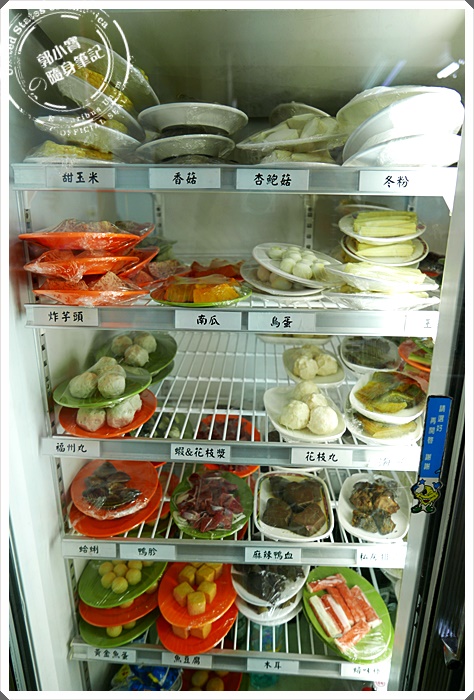| 冰箱食材眾多~只怕你挑不到,這邊是看盤子計價的,不過沒有標示價錢,寶妹都是拿了再說,因為其實吃過幾次之後我知道火鍋料並不貴。 |