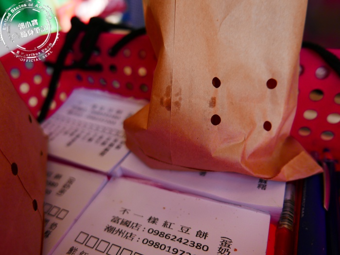| 紙袋上都會打洞,讓熱氣不會留在袋內,防止產生水氣使紅豆餅外皮濕軟影響口感。 |