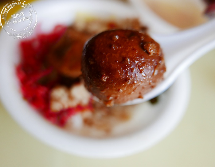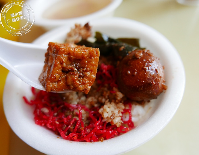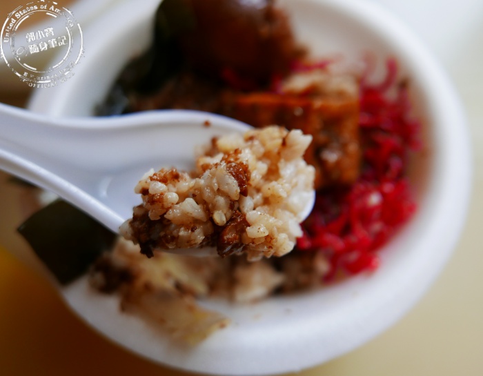 | 他們家的肉燥飯是比較偏瘦肉一點的,小編很怕吃太肥太油膩的肉燥飯,大熱天的真的會沒食慾,但是他們家的小編很喜歡喔,因為肥肉的部分不多,少了油膩感但香氣也略減,滷汁給的算多所以白飯吸滿滷汁鹹香,紅豆棗絲增添甜味,薑片使口感清爽也多了辛辣感。 |