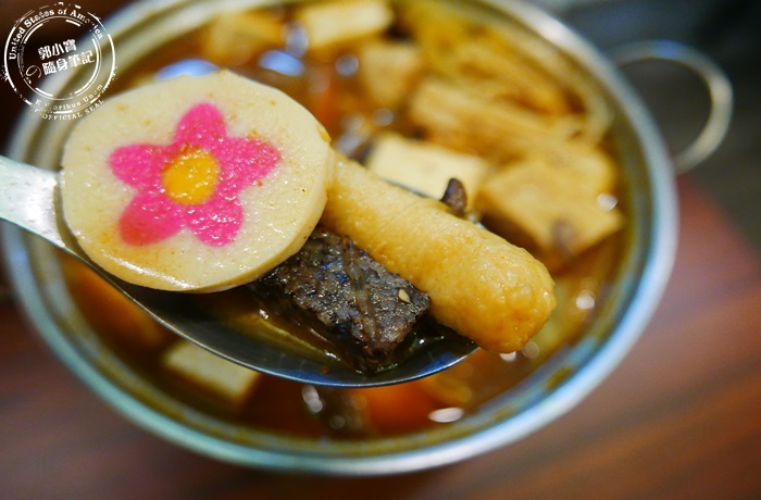 | 配料有竹花、小黑輪、米血,這些好像吃火鍋基本上都會看到的配料,竹花跟小黑輪都屬於魚漿製品,都是很Q很彈很有嚼勁的,除了吸收了湯汁香辣夠味,還吃的到魚漿的甜很好吃,這種火鍋料就是有些人喜歡有些人不喜歡,噢北編自己是蠻愛的,而米血大概是眾多火鍋料中最受歡迎也必吃的,應該是煮過後的米血香氣更濃郁口感軟Q越嚼越香還能增添飽足感,就是這樣的魅力大受好評。 |