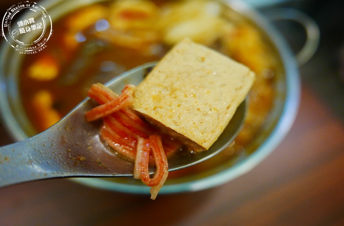 | 配料裡的蟹肉棒跟凍豆腐,凍豆腐吸飽湯汁每咬一口就爆湯汁,香氣十足也有原本的豆香,一層層的口感非常特別,釋放多汁又紮實的層次,凍豆腐真的很適合跟火鍋在一起,蟹肉棒因為都煮到化開了,就是軟軟口感這樣沒什麼感覺。 |