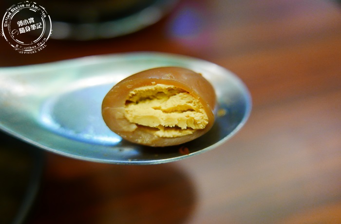 | 找到一顆鹌鶉蛋,外表看起來就很夠味,因為都煮到蛋白變顏色了,咬開真的蠻厲害的真的超入味蛋黃也不會很乾,反而有點濕潤感且蛋黃香氣很濃,後來才發現這個也是加點區推薦的特滷鳥蛋,一般的小火鍋通常看到都是水煮的鵪鶉蛋,他們家連這細微的部份都下功夫做足,真的非常用心,難怪他們家滿滿人潮,重點湯頭一點也不馬虎又平價,噢北編以往吃這種個人小火鍋沒有便宜到哪裡去可是料卻少的可憐湯頭味道也還好,他們家的料真的超多超實在,內用又有冷氣吹、飲料喝,整個CP值爆表,大家都超愛的。 |