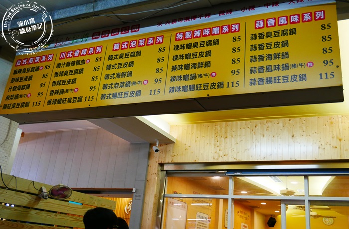| 內用跟外帶一律排隊在外點餐,所以在排隊等候的同時,就可以抬頭看看上方的菜單想想要點什麼,畢竟他們家的鍋類還蠻多的,湯頭部分有五種風味系列,再來就是挑選要什麼配料的鍋,其實每種湯頭都好想吃吃看喔,而且價格都好便宜,真的很吸引人。 |