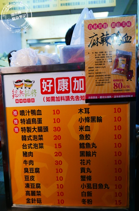 | 另外還有加點區可以做加點跟真空包裝的麻辣鴨血做販售,加點區的種類很多而且價格都是銅板價很划算,怕吃不飽的朋友可以加點自己喜歡吃的。 |