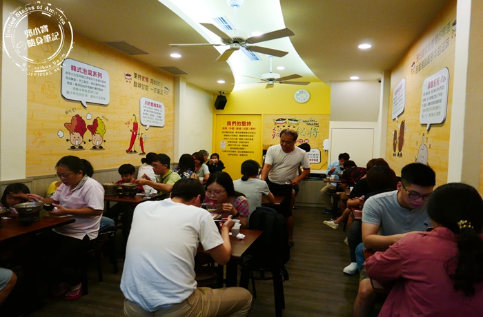 | 店內座位蠻剛好的,而且店裡有裝潢色系溫暖整體很舒適,牆上有可愛的食材圖案跟解說新穎又吸睛,坐位其實也挺舒適的不會過於擁擠,最重要的是有冷氣,這天氣吃火鍋沒冷氣應該會吃到昏倒吧!有冷氣就會增加人氣。 |
