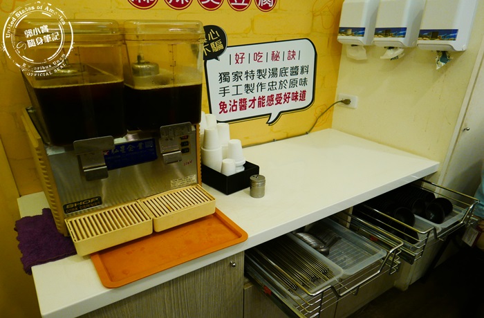| 還有提供紅茶免費無限暢飲,紅茶味道很好,不會特別甜也不會淡的像水一樣,也是有紅茶香味,不會說因為是免費的品質就降低節省成本,餐具也都是在這裡自取,但是沒有調味料跟沾醬那些,店家在牆上有大力的掛保證,說實在的他們家還真的都不用沾醬就非常夠味了! |