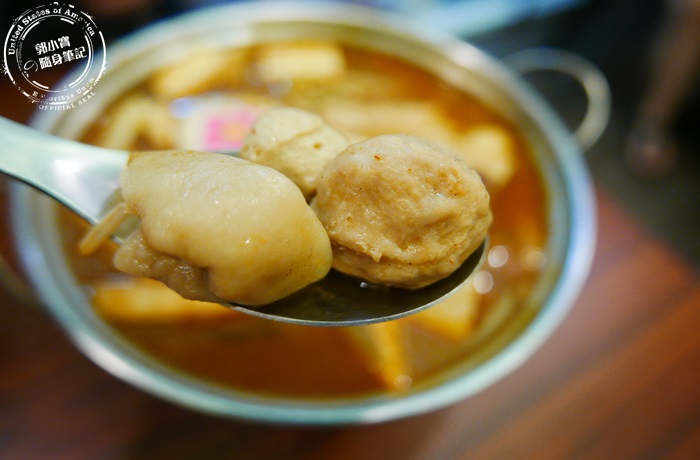 | 配料有魚餃、貢丸、虱目魚丸,魚餃就跟一般吃火鍋會吃到的是一樣的,煮的剛剛好外皮吸了湯汁整個就很鹹香帶辣度,口感很Q軟好吃,貢丸不是超大顆的但是沒有偷工減料,紮實Q彈也吃的到豬肉香,很鮮很夠味,虱目魚丸是最小顆的那個,一口吃下虱目魚香味很明顯,一樣彈牙紮實很Q很香,一點都不馬虎的火鍋料。 |