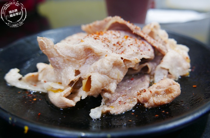 | 燙好的肉片可以直接沾取蛋黃液做食用,或是要再加蘿蔔泥或蔥花都可以,但北邊喜歡吃原味的所以就直接沾蛋黃液,沾了蛋黃口感會更滑更順,味道很香濃,濃濃的蛋黃香跟肉香在嘴裡擴散,重點豬肉很軟嫩,而且大塊滿足,吃得到一種爽度。 |
