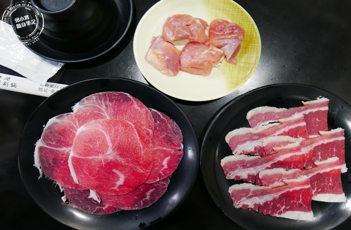 | 既然是吃到飽的那三種肉品一定都要來上一份,有牛肉、雞肉、豬肉,色澤都很漂亮,也都有厚度,不會太薄,沒有來過的朋友建議三種肉品都可以吃過一次,不吃牛的就不要點牛了,先試試看哪種肉品吃起來比較合胃口,再繼續點。 |