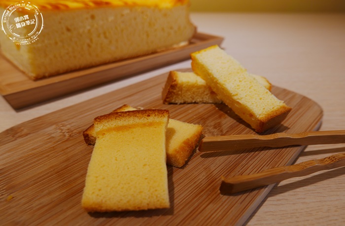 形狀不同於長條狀的是蜂蜜蛋糕,由於蜂蜜蛋糕已經售完,只好拿試吃品拍照,北編來的時間也不過店家才開店營業兩小時而已,蜂蜜蛋糕就完售了,也太快,老闆說多半是客人先預定的,而且因為量也不多,所以常常會有搶購一空的情形,如果想吃的朋友記得事先預訂喔!