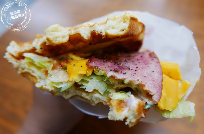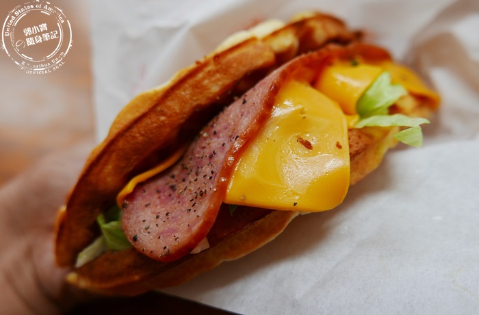 | 最底層的蔬菜,除了生菜之外還有刨成絲的小黃瓜,塗上一點美乃滋,甜甜的的加上蔬菜的爽脆,濕潤香甜,起司遇到培根熱熱的,有一點融化奶香迷人,培根非常的柔軟,香氣足,咬在嘴裡釋放香氣,口感微微脆感帶點彈性,咬下的時候還有肉汁滲出,撒上胡椒增添香氣,整個鹹香濃郁搭配蔬菜變得清爽解膩,口感超豐富超有層次,重點是鬆餅,很蓬鬆很柔軟,那個麵粉的筋性咬在嘴裡的口感很棒,而且很香裡頭的氣孔佈滿熱熱的香甜味,每咀嚼的時候都會在嘴裡感受到,鬆餅本身微甜,做成鹹食吃起來感覺還不錯,甜鹹的中和在一起還蠻好吃的。 |