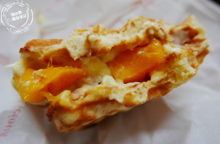 老闆他們自製的卡士達醬,綿密香滑重點不甜膩,感受的到香草味跟牛奶的香甜,口感算是蠻清爽的,感覺非常的天然無負擔,味道上的也不會太濃,再加上這滿到溢出來的芒果,酸酸甜甜的滋味很美妙,這真的沒什麼好說的,新鮮就是好吃,而且芒果的香氣十足,吃完是真的會口齒留香,鬆餅的香、芒果的香味還有卡士達的香,這香味是多麼的有層次,咬在嘴裡除了香甜還超爆水的,濕潤感十足,鬆餅蓬鬆有彈性,大口吃下好滿足好幸福,抓住夏天的尾巴這芒果卡士達超好吃。