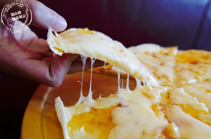 吃起來真的會忘記有皮的部分,因為外皮很薄,口感上是些許的有Q勁,也能感受到麵香,但都只是淡淡的而已,薯泥的部分店家算是調配的很好,不會太濕也不會太乾,也有下一些調味料讓薯泥吃起來蠻有味道的,口感綿密細緻重點馬鈴薯的香味很突出,表現得非常好,起司的部分雖然量蠻多的,但並不會太濃太油膩,軟軟QQ的很香,整體搭在一起口感上還是有層次的,若想要吃起來的口感更豐富更有嚼勁,其實可以把每一片披薩捲起來,就有層層堆疊起來的感覺,像是捲餅一樣,很飽口層次很豐富,吃披薩也能有不同樂趣。