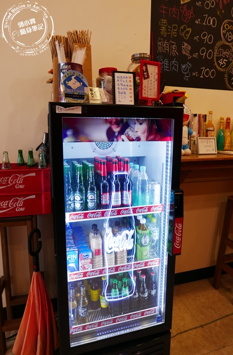 | 冰箱裡有各式各樣的飲品可以讓客人挑選,價目表就在冰箱上方,艾編一眼就發現了中間層的奶茶蠻特別的,是店家特別推薦的蕾亞奶茶,這是老闆娘跟朋友合作販售的,使用的是高大鮮乳,有伯爵、鐵觀音和復刻奶茶三種口味,但因為我們是要離開的時候才發現的,就沒有再特別的點來喝,不過感覺蠻厲害,蠻大瓶的,價錢部分就跟前陣子很夯的奶茶販賣機一樣,下次可以點來試試看,或是大家有興趣也可以來品嚐。 |