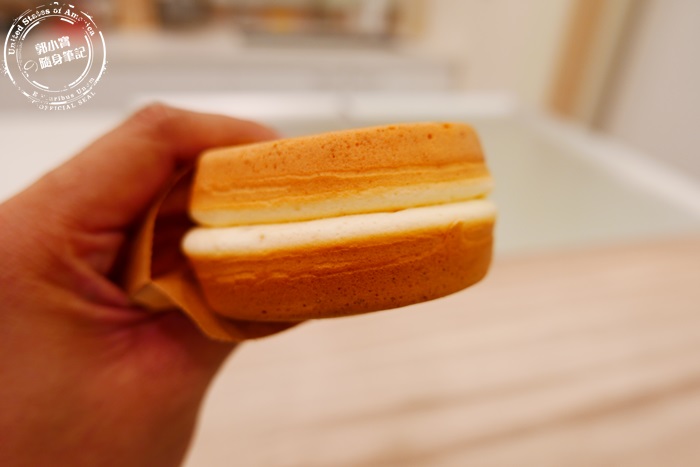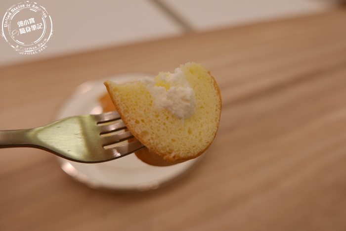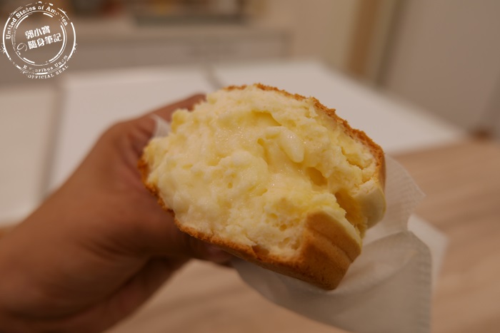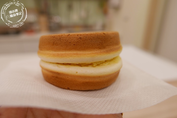 | 最誇張最炸裂的就是這個卡士達,這個似乎上下層的蛋糕,都已經地基不穩了,這個就肯定爆漿的,那卡士達內餡太不受控制了,不過他們家的卡士達調的很好,艾編超愛,香草味道香濃,奶味溫馴厚實,柔軟的在嘴裡化開,濕潤香甜完全不膩口,齒頰留香意猶未盡,卡士達跟外面的蛋糕搭配吃起來,讓外面這層蛋糕感覺像是從日本紅到台灣的厚鬆餅一樣,吃起來的感覺真的很像,非常的蓬鬆柔軟,艾編在日本吃過厚鬆餅,但覺得蛋腥味有點重,他們家的蛋糕體不會喔,沒有蛋腥味,留下來的都是滿滿的香氣,自然的香甜,卡士達不愧是店內的人氣招牌,這個大家一定要嚐嚐看。 |