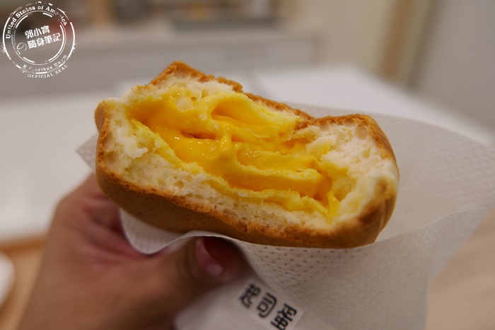 | 先來試試起司蛋,先將蛋皮鋪上起司,折疊成一塊方形大小再包進去紅豆燒裡面,所以可以看到一層一層的蛋皮裡頭有著融化的起司,畫面也太美,層層堆疊的口感好豐富,起司濃郁奶香配上蛋香口感軟彈,鹹香味道跟鬆軟的紅豆燒拚在一起,微微的甜中和了鹹,這樣的味道在嘴裡超幸福的。 |