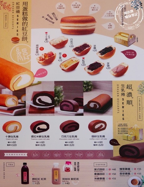 | 這菜單好像百貨公司的DM,好美唷,然後不知道又要從何下手,最吸引艾編的是那用蛋糕做的紅豆餅,而且新鮮現做所以一定要吃,他們家還有生乳捲,但是口味要依現場看到的,有才吃的到,剩下就是飲品的部分,有紅茶、鮮奶茶還有咖啡,不過今天來只有茶類咖啡沒有,價錢艾編覺得很合理,在這樣精華的地段,提供這麼精緻的下午茶點,這價位很親民呀,怪不得人氣超夯。 |