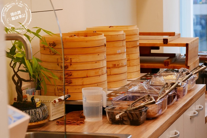 | 等餐過程中,發現這一堆蒸籠裡,原來是放置製作好的紅豆燒,躺在裡頭保溫唷,太可愛了吧!,所以大家如果外帶回家冷掉了,可以用蒸的方式讓他回溫,就會像新鮮剛出爐的一樣喔,蒸籠前方那一整排的餡料,都是店家手工製作的,手作的堅持,連紅豆燒的麵糊都是新鮮現打的(講的好像現打果汁一樣XD) |