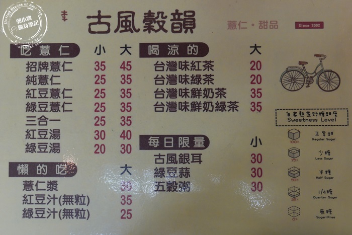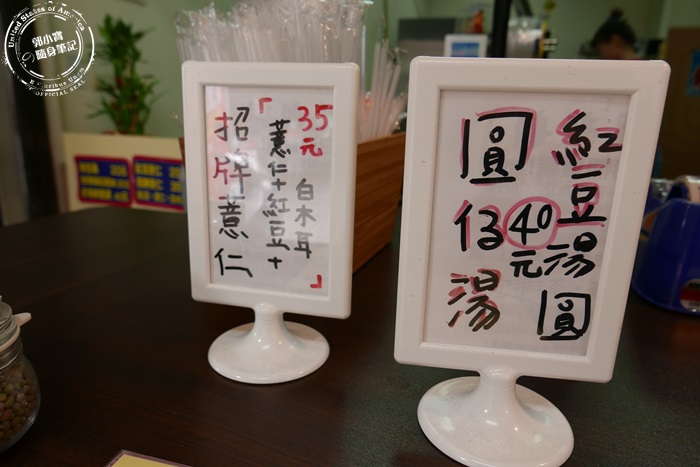 | 他們家的菜單,最主打的就是薏仁,延伸出很多口味,還很貼心的將薏仁、綠豆、紅豆提供給不喜歡吃顆粒的客人,所以提供懶的吃的養生飲品,有台灣人愛喝的飲料,有每日限定的甜湯,價錢好親民,畢竟在這個地段,大多是來買菜的婆婆媽媽們或是還在上課的學生,對於錢可是很精打細算,所以這價位蠻合理。 |