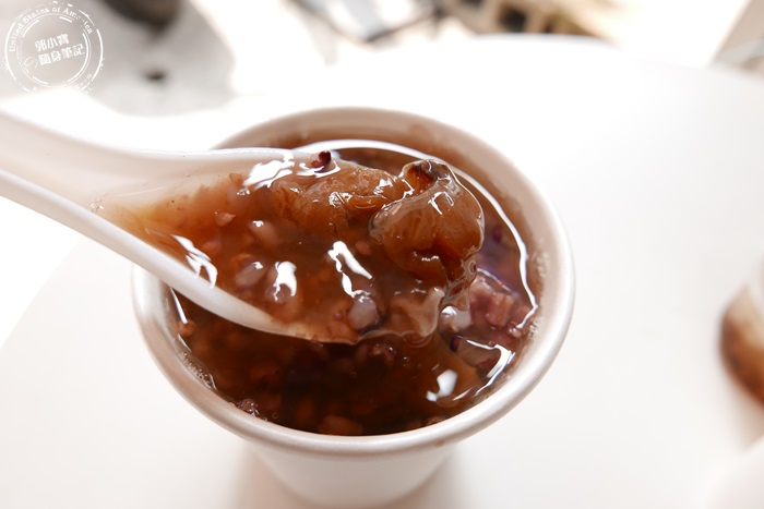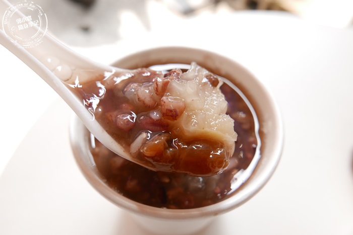 | 感覺有吃到燕麥、薏米、黑糯米、糙米、紅豆、這麼多種穀物,熬煮後這些食材都有煮熟煮軟,但是還保有原本的口感,在嘴裡多層次,QQ脆脆的咬起來很舒服好滿足,重點他們家的五穀粥並不會太過濃稠,稠度適中相當的滑嫩順口,這個五穀粥可以選擇無糖或是半糖,艾編選半糖的,再加上銀耳裡有桂圓,甜度香氣更充足,味道超香的。 |