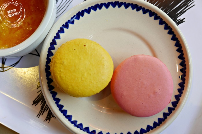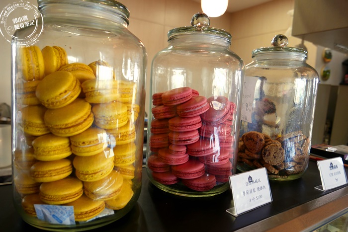 | 老闆做出來的馬卡龍真的很可愛耶,顏色也很美,口味應該可以很多變,只是老闆現在是在嘗試的階段,目前這兩款是屬於常溫型的馬卡龍,裡頭夾的是巧克力的內餡,口感也比較適合台灣人,而且可以常溫下放置一個禮拜,所以很適送禮或是長途旅遊不需要馬上要帶回家冰,老闆說他們也有要製作跟國外一模一樣的馬卡龍,不過那款只能放冰箱保鮮,因為內餡是使用起司,口感味道會來得更好,未來有打算研發冷凍型的,老闆勇於嘗試的精神太令人欽佩了,期待下次來可以看到更多撫慰人心的甜品。 |