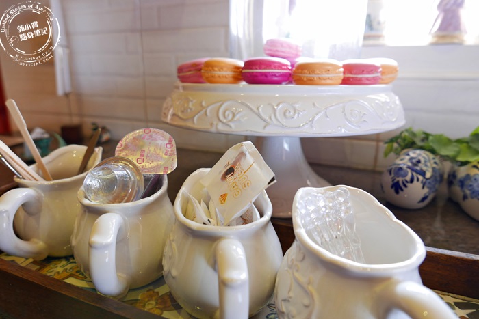 | 自助餐具區,一系列高雅的餐具,讓人不自覺的動作也跟著優雅了起來,動作輕盈的讓自己更有氣質的樣子,這裡的裝飾品不但有高貴典雅氣息,也有繽紛可愛的少女心,很適合各種年齡層的來這裡享受一下。 |