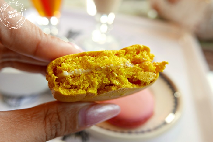 | 說真的,馬卡龍這個價位艾編真的覺得很便宜,因為你們知道這一顆在法國巴黎有多貴嗎?是會下不了手的那種,尤其又是名店的馬卡龍的話那價格真的不是普通人吃得起的,他們家的馬卡龍不只做得漂亮美觀,味道還很好吃,脆脆又軟軟的口感,不愧是少女的酥胸來著,酥香的口感每口都甜蜜蜜的,配茶最舒服,這顆黃色的優格巧克力口味,吃起來有點優格的香氣但不是太明顯,微微的酸度口感更清爽,甜度上我覺得是台灣人可以接受的,尤其女孩子一定超愛,男孩子可能就覺得還好。 |