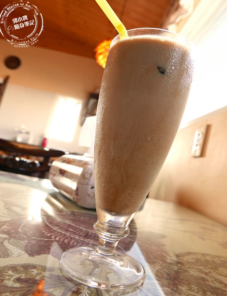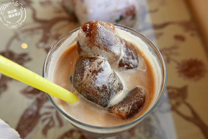 | 拿鐵咖啡真的蠻特別的,原本就按比例調出拿鐵,但老闆擔心如果上面是加冰塊,冰塊融化之後咖啡的味道也就跟著變淡,所以老闆很用心的加入了咖啡冰磚,所以這個咖啡喝起來是越喝越香醇越濃郁,奶味也相當的厚實,喝起來冰涼順口,咖啡是無糖的,如果有需要加糖的話自助區都有糖漿球可以自行取用,不過艾編覺得吃甜食配咖啡,無糖的咖啡最對味,這樣綜合起來剛剛好,紅茶的部分有分現泡的伯爵紅茶,跟老闆熬煮的錫蘭紅茶,這次點的是錫蘭紅茶,但感覺喝起來沒有多大的特色,就是淡雅的紅茶香味,微微的甜度冰涼好喝,喜歡喝咖啡的真的很推薦他們家的咖啡喔!尤其是這杯拿鐵咖啡有讓艾編尬意。 |