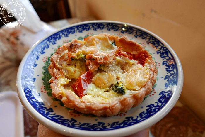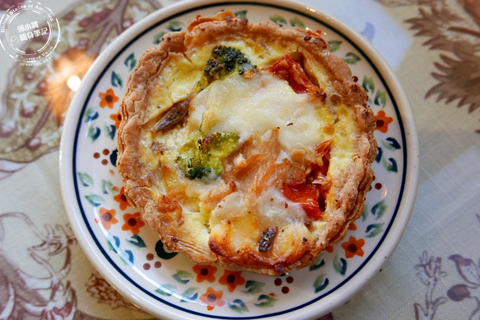 | 其實原本只點了一個鹹派,但因為老闆忘記了,所以等待的時間有點長,老闆多招待了一個賣相比較不好的鹹派,說實在的看上去沒有什麼賣相不佳的樣子,還蠻合理的啊!真心謝謝老闆的招待! |