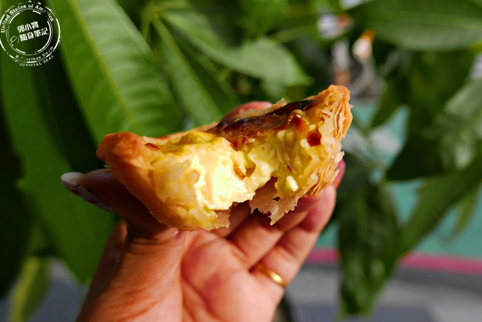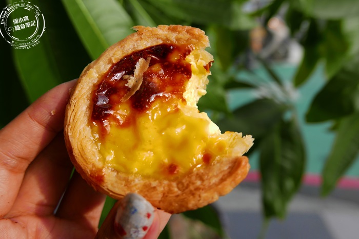 | 這個蛋塔一進到嘴裡,感受到的是幸福的味道,外層塔皮非常之酥脆,裡頭的蛋液加鮮奶,烤過之後的香甜軟綿,濃郁奶香在嘴裡都融化了,外表酥脆裡頭柔軟,口感味道極好,跟在澳門吃的到葡式蛋塔有異曲同工之妙,這蛋塔大推呀!買三個更划算。 |