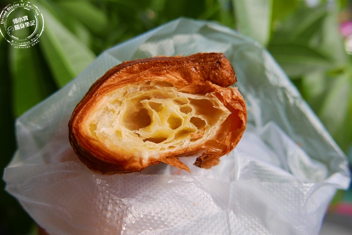 | 其實有時候看到這種牛角麵包,都會腦波很弱的一定要吃,可是一般麵包店,牛角一次都要買一包,這家店很貼心的可以單個單個購買,所以看你今天的食量有多大,就購買幾個,很人性化,像艾編今天只想吃一個,所以買一個也行,他們家的牛角烤得非常的漂亮,還沒入口就聞到濃濃的楓糖香氣,香甜濕潤的味道,加上烤得酥脆的外皮,一層一層的口感,酥脆中帶點柔軟越嚼越香甜,真的很好吃,ㄧ下下就吃光光了,超喜歡的。 |