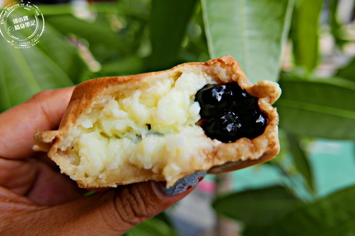 | 他們家紅豆餅的大小,外表看起來蠻堅挺的,也蠻大顆的,一樣會有紅豆餅麵糊溢出來造成的像是飛碟的造型,夠酥脆的話口感就像餅乾,紅豆餅上會用不同的調味粉去分類,但其實只有老闆娘才知道口味的區分,一般顧客沒特別去問的話,通常都是拿什麼吃什麼XD |