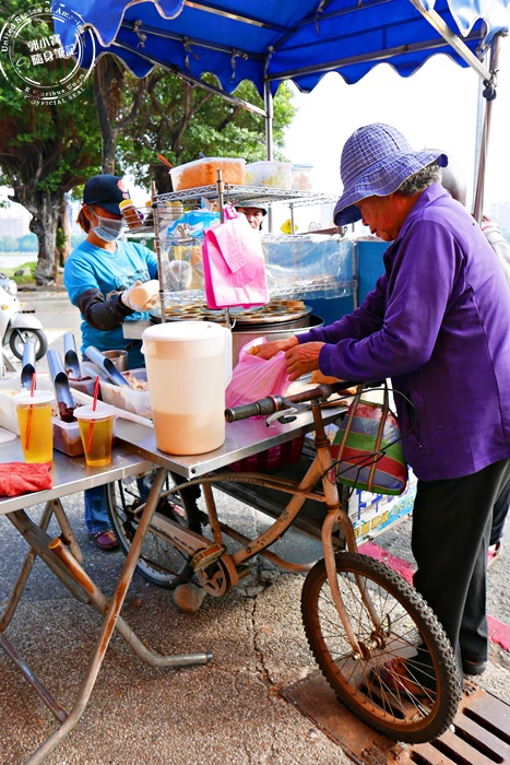 | 真的對紅豆餅沒什麼抵抗力,今天路過看到這攤以腳踏車販售製作紅豆餅,聞到香味就立刻被吸引,尤其又看到這麼多人排隊,這不買來試試看真的會心癢癢,餐車位於蓮池潭附近,萬年季的路線,蓮潭路跟左營下路路口處,下午時段來,其實賣吃的就那幾家,蠻好認的,而且排隊也不會排太久,很適合下午茶來吃個止餓的,艾編要來去加入隊伍了。 |